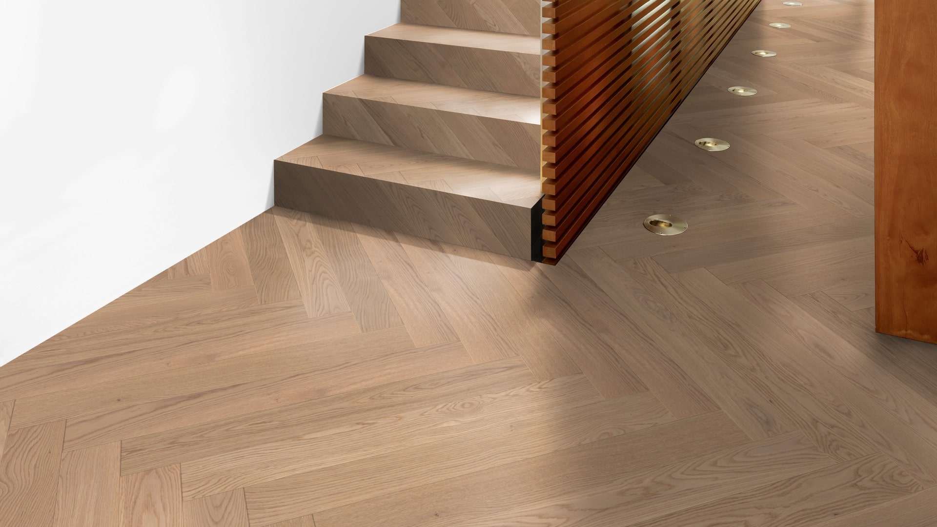 Zu diesem Parkett gibt es auch die passenden Holz-Stiegen von Weitzer Parkett – dadurch ist absolute Oberflächen- und Farbgleichheit garantiert.